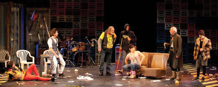 Lea: *laughs* The set was really nicely done. I loved the milk crate Union Jack at the beginning of the play.